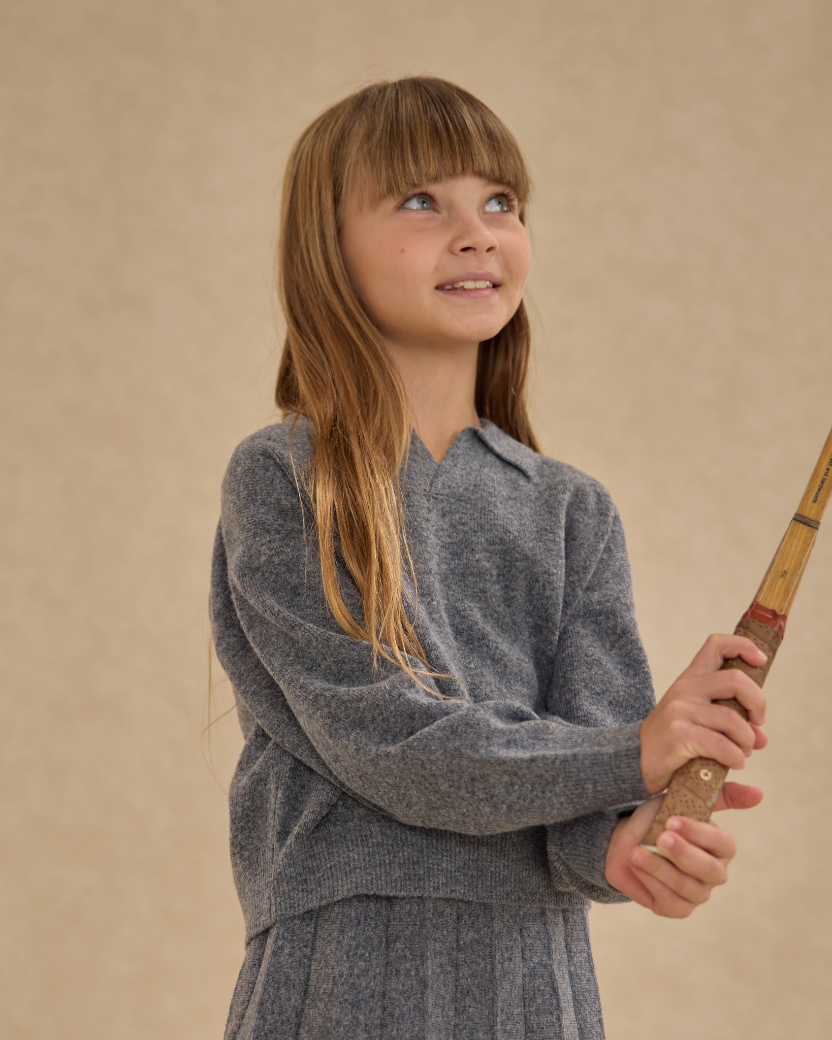 Made from a cozy wool blend, this pullover sweater features a collared v-neckline for timeless style. Pair it with our Knit Pleated Skirt for a cute, preppy look.