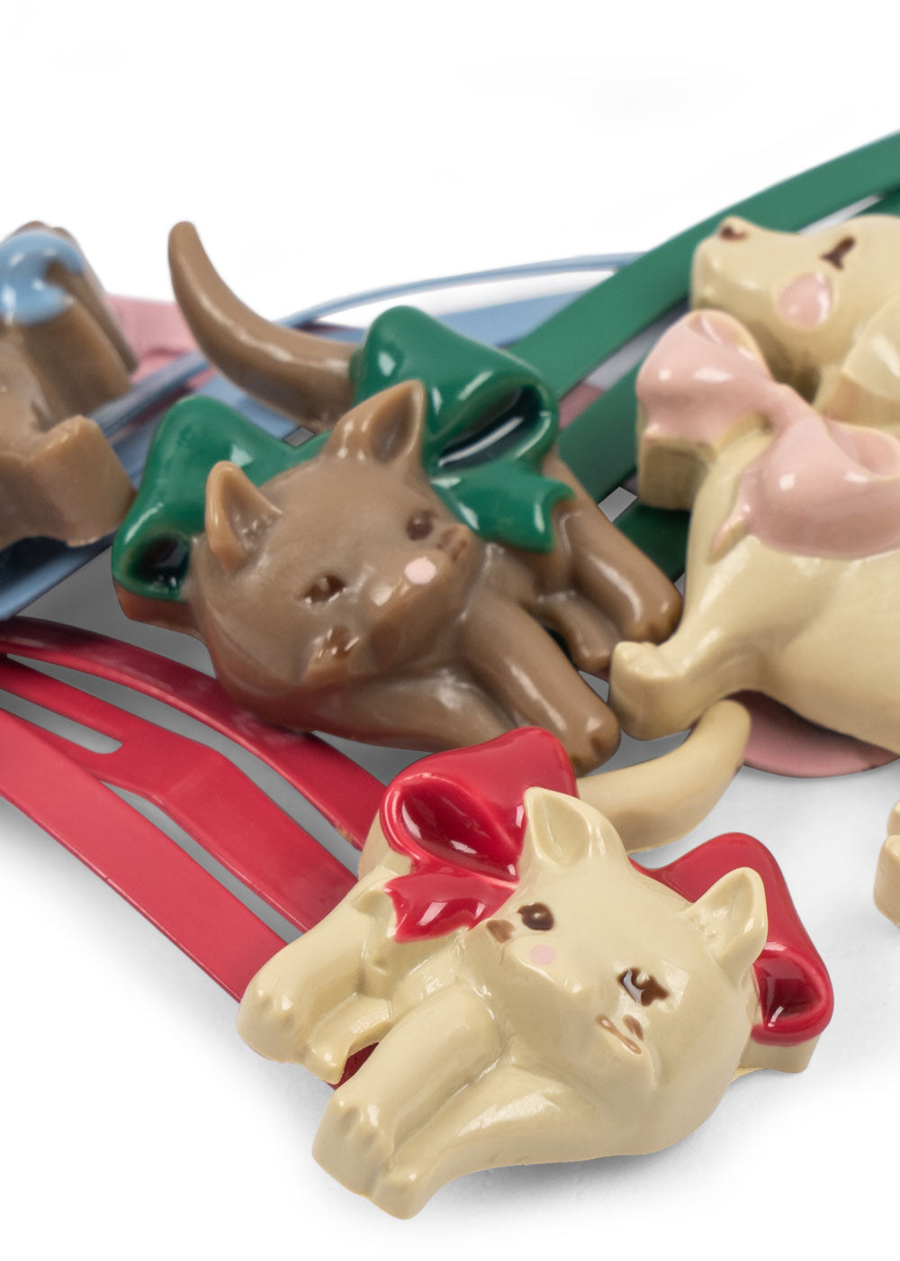 Add a woof or miaw - or both - to your outfit with our 4-pack Cats & Dogs hair clips. Designed like a classic metal snap hair clip with a slim, curved shape that easily opens with a gentle push and securely snaps closed to keep hair neatly in place.