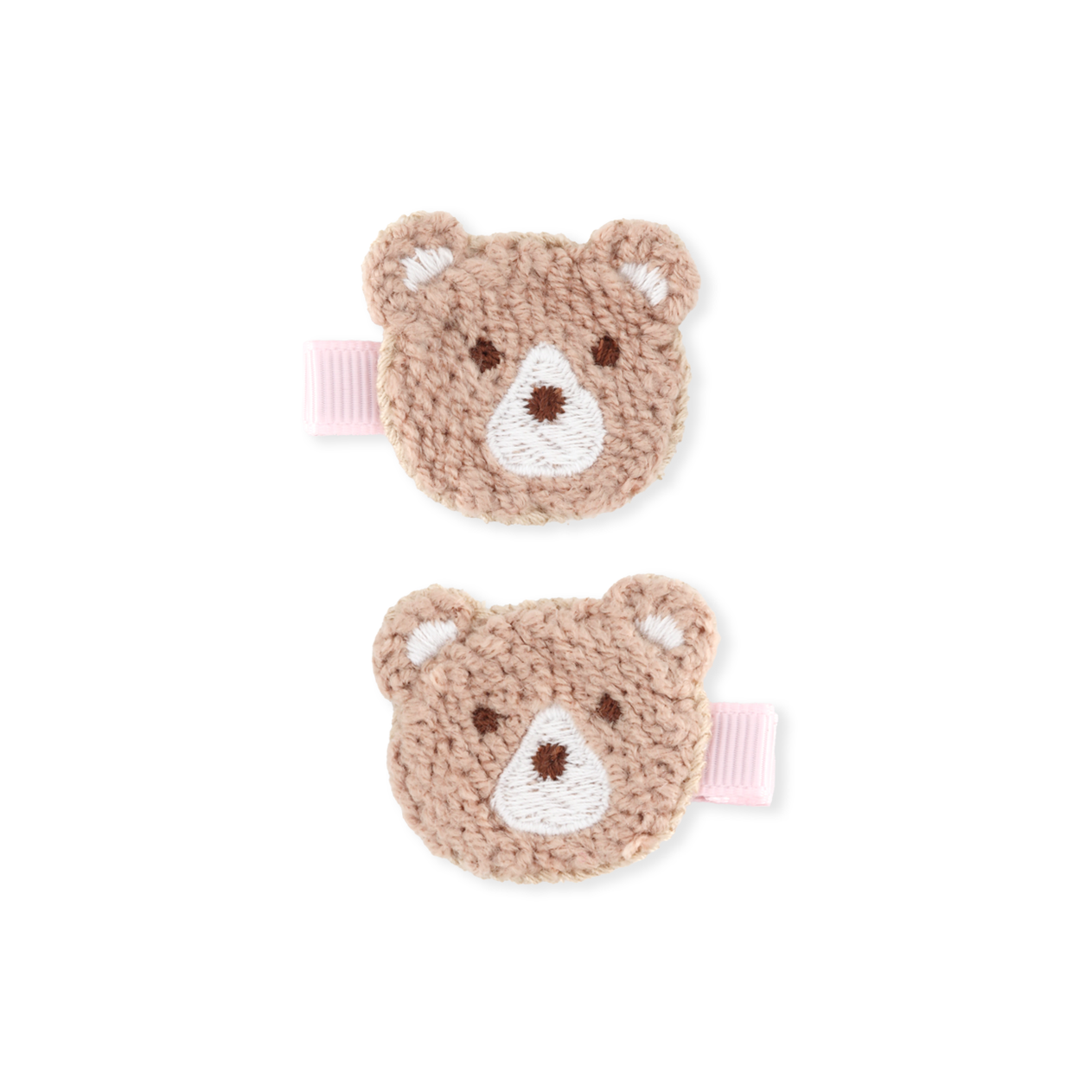 Made from soft bear embroidery, this clip measures approximately 4.5cm wide by 4cm tall. It is attached to a 3.5cm alligator clip with teeth for a secure and comfortable hold.