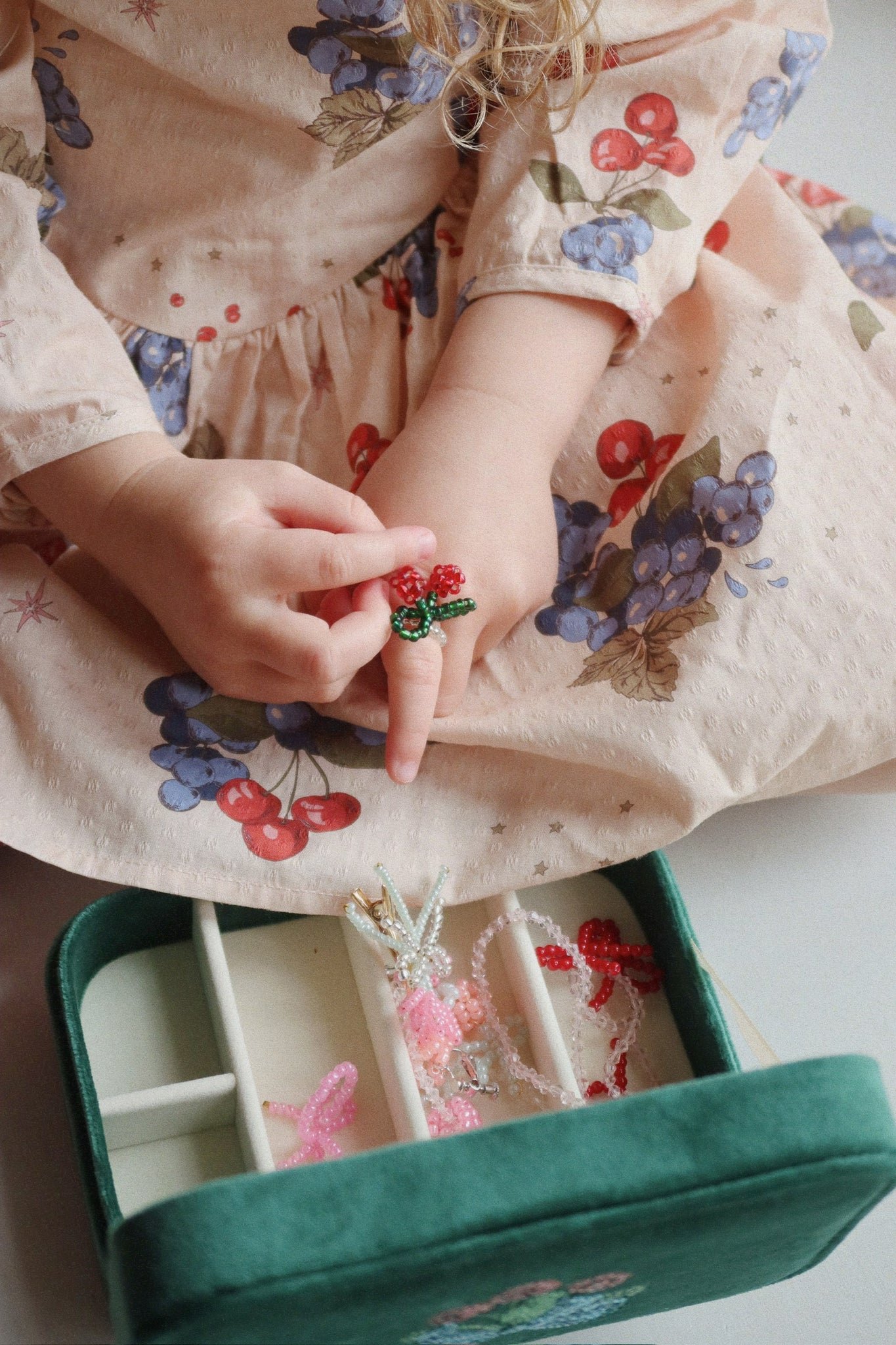 Sweet velvet jewelry box with all the pearly jewelry you could possibly dream of. All bracelets and necklaces are elastic and suitable for all.