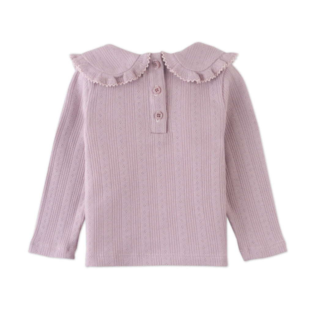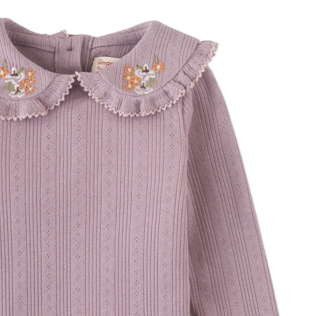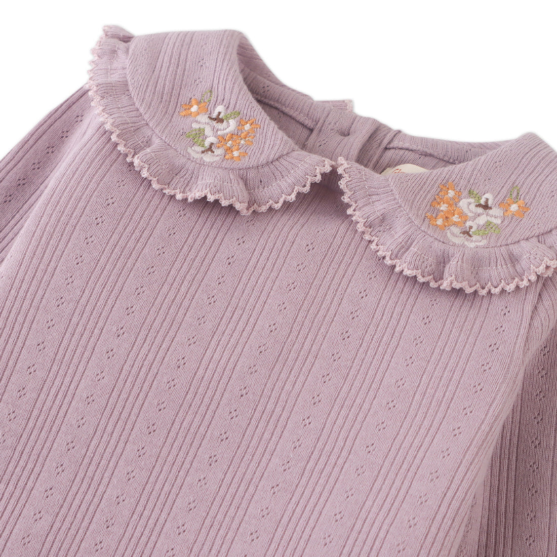 The Baby Cora Long Sleeves Top exudes sweetness with its delicate purple shade and embroidered details on its collar.