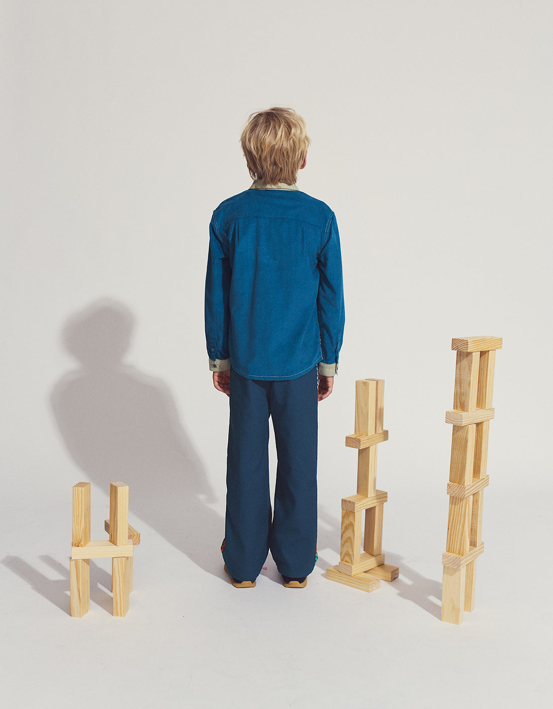 LIEV BUTTON DOWN LONG SLEEVES SHIRT PALE OLIVE/BLUE COLORBOCK WITH MACHINE STITCHING ACCENTS
