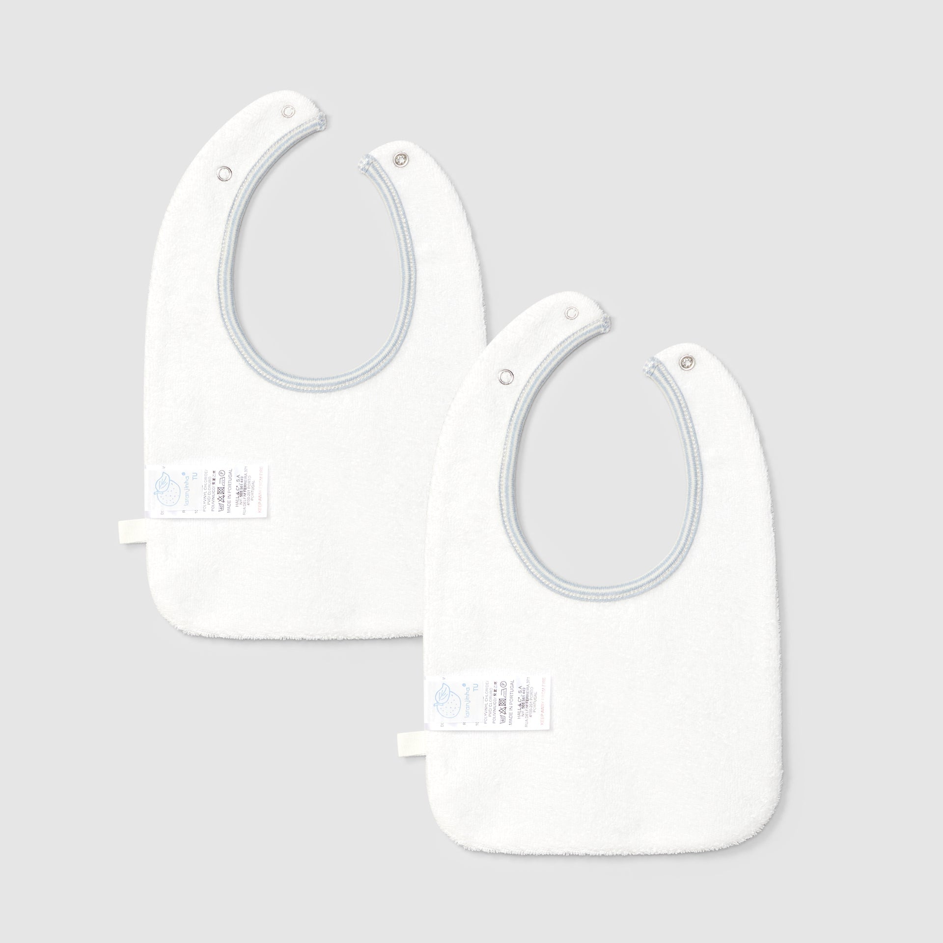 Pack of two bibs lined with waterproof terrycloth. Adjustable poppers at the neck for better adaptation to the baby s growth. One in printed cotton jersey and the other plain.