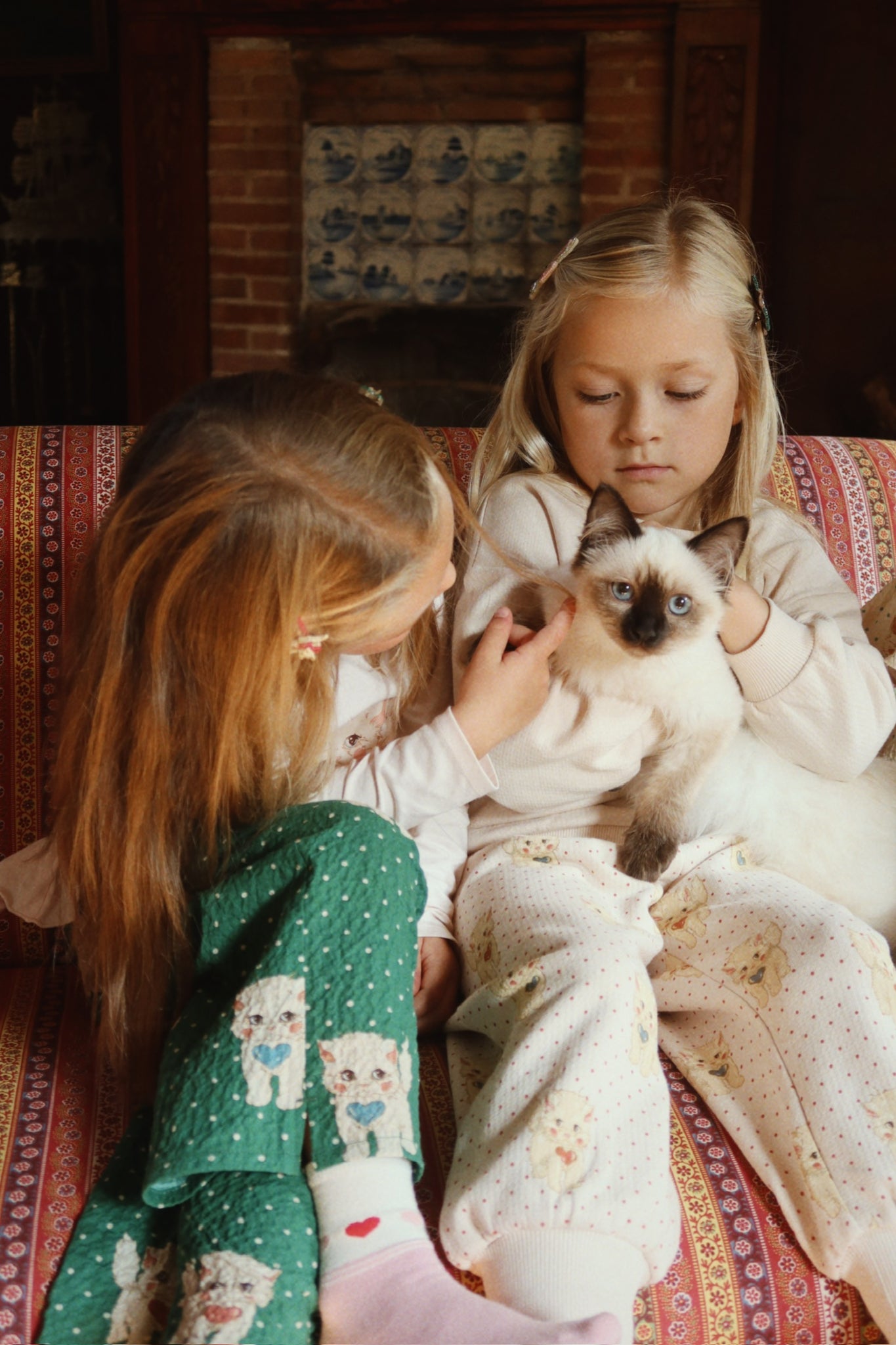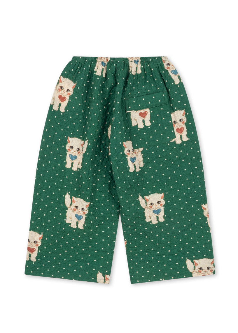 Soft organic cotton pants with a textured seersucker finish. Designed in a casual, loose fit with an elastic waistband and decorative slit detaling at the bottom hems.