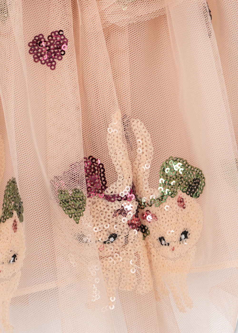 Our Yvonne dress is the stuff of dreams: a voluminous tulle piece with shimmering sequin details and a large bow in the back as the perfect finishing touch.