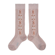 Jacquard Flower Knee-high Socks - Vieux Rose