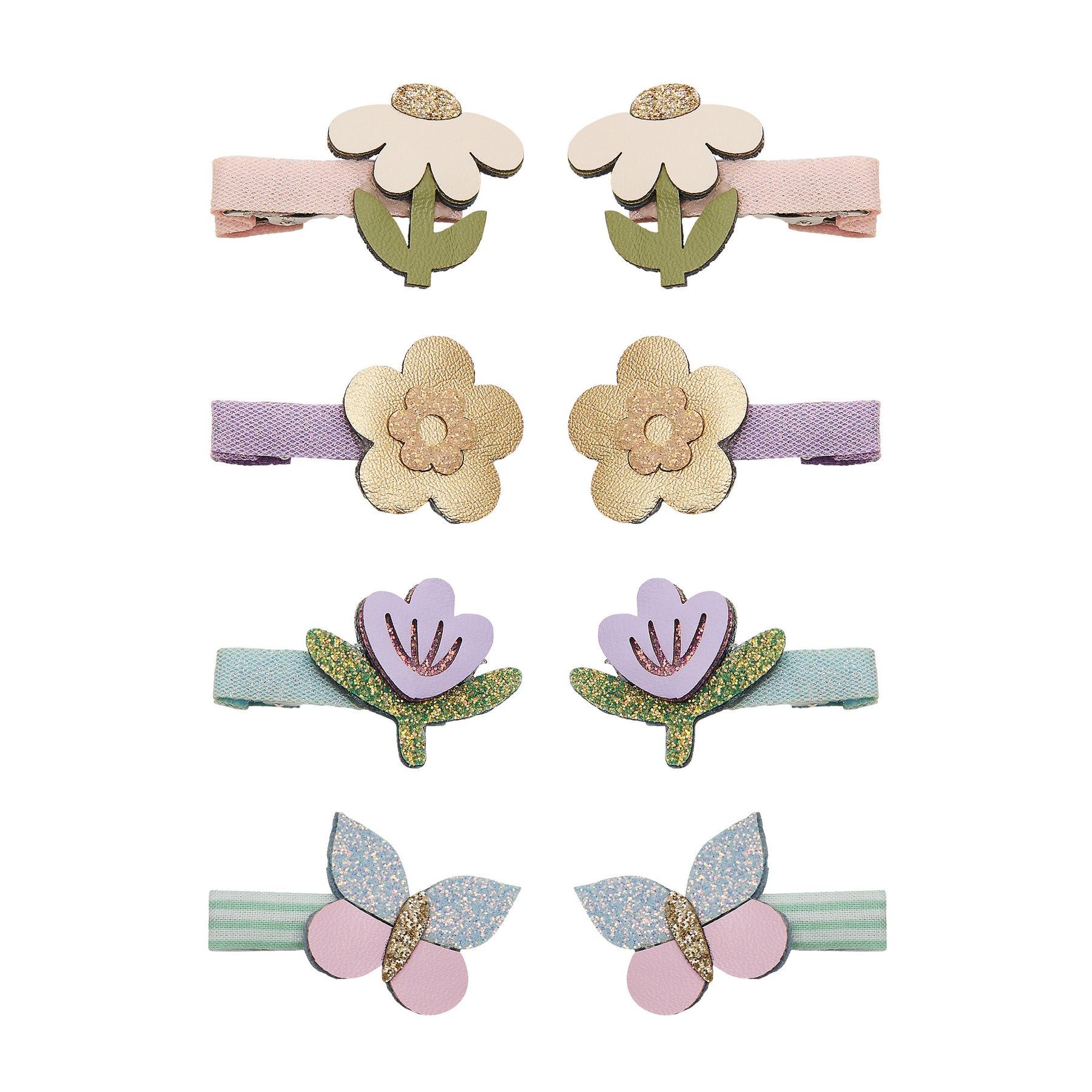 This lovely little set of mini clips features dainty flowers and tiny butterflies in gentle pastel tones — perfect for adding a whisper of spring to any hairstyle.