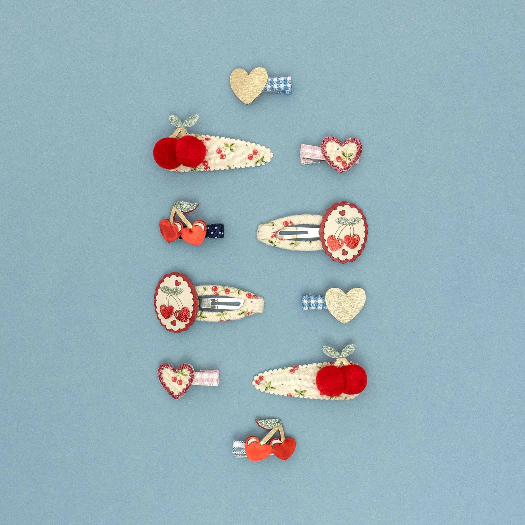 Sweeten up any hairstyle with these charming cherry mini clips! Bursting with bright red cherries and cheerful little hearts - the perfect finishing touch for any playdate or party!