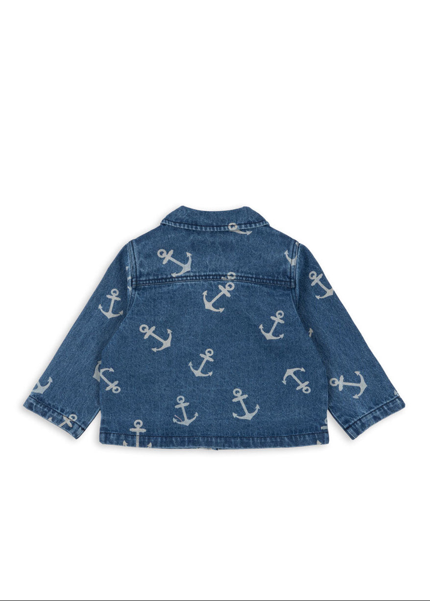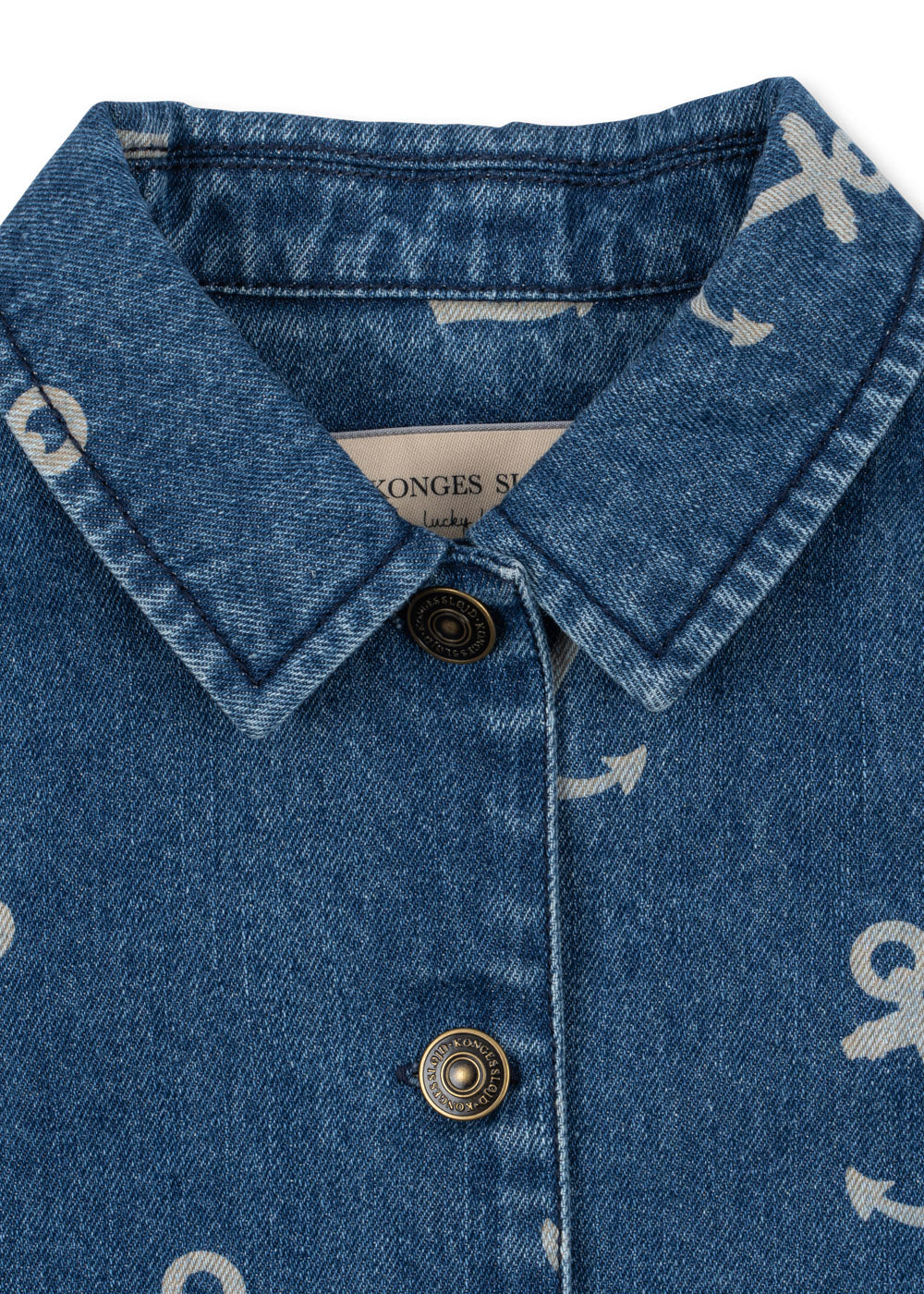 Denim jacket in a classic shirt jacket design with a straight fit, regular collar, and front patch pockets.