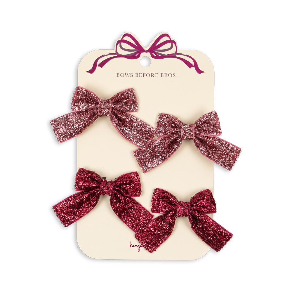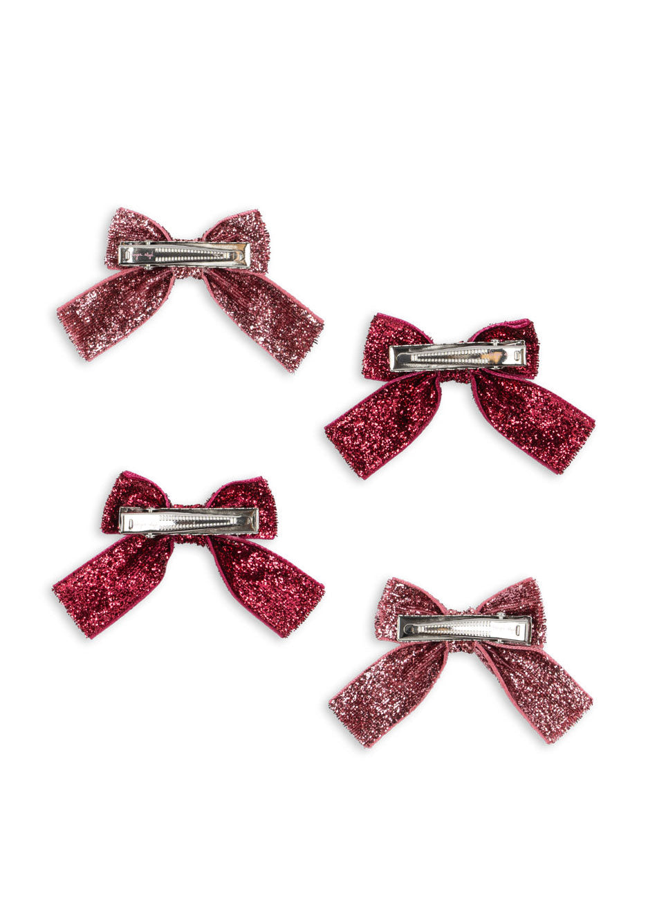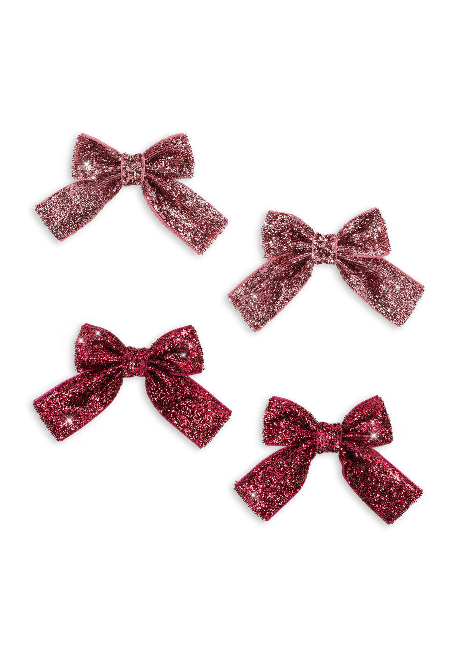 Complete little hair accessory set with four decorative glitter bow hair clips.