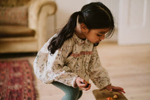 A lovely, simple, long-sleeved winter romper in a floral printed slubby cotton. We've added a press-stud opening for easy changes and buttons at the back. There is cotton crochet trim detail around the collar and cuffs and lovely cotton broderie anglaise trim gathered into the yoke seam. This romper is lined in cotton voile.