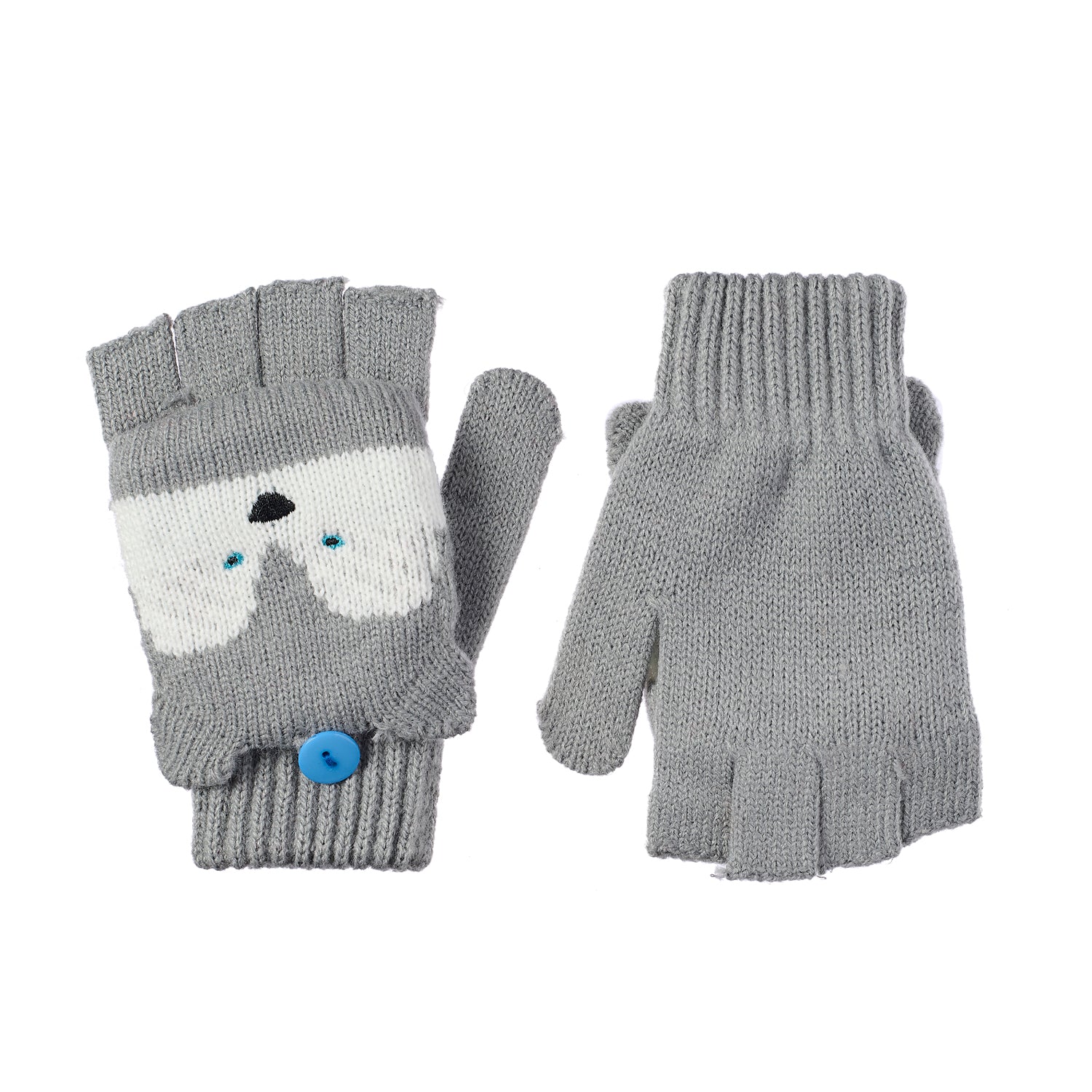 Our Husky Dog knitted gloves are the perfect friend to keep your chilly hands warm this winter! Our cosy gloves are made with super soft grey and white yarn, and features a sweet embroidered face and little velvet ears. These fingerless gloves also have a fleece lined cap which can be secured with a button when not in use, and an enclosed thumb.